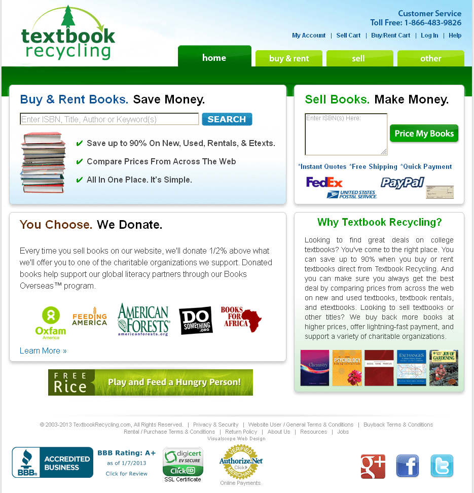 Textbook Recycling specializes in buying, renting and selling new and used college textbooks as well as typical trade books. We have integrated the third party website that provides services like database of college books and buying & selling functionality through web services.