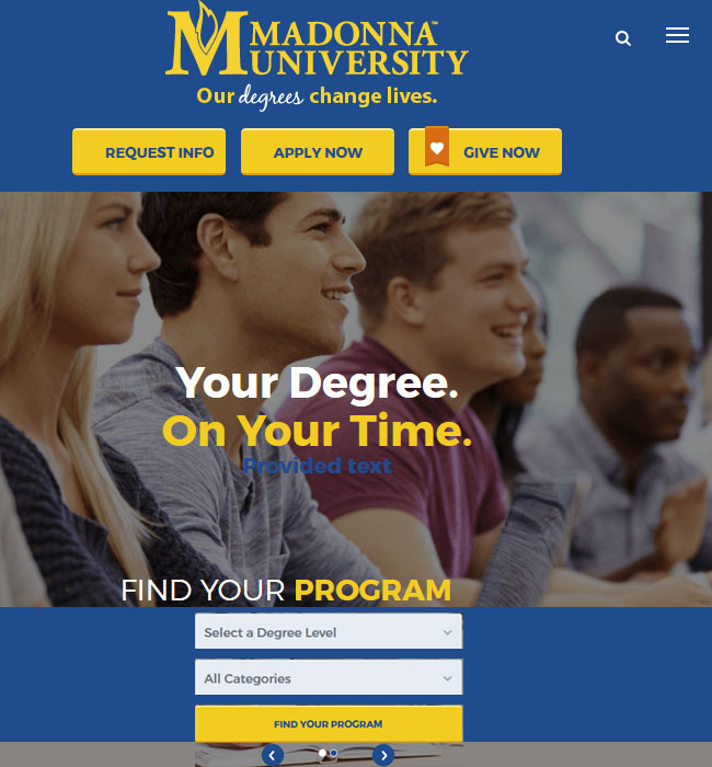 Madonna University is a leading education provider in the USA that offers both on-campus and online courses at various degree levels. The client wanted us to create a responsive version of the existing website.
