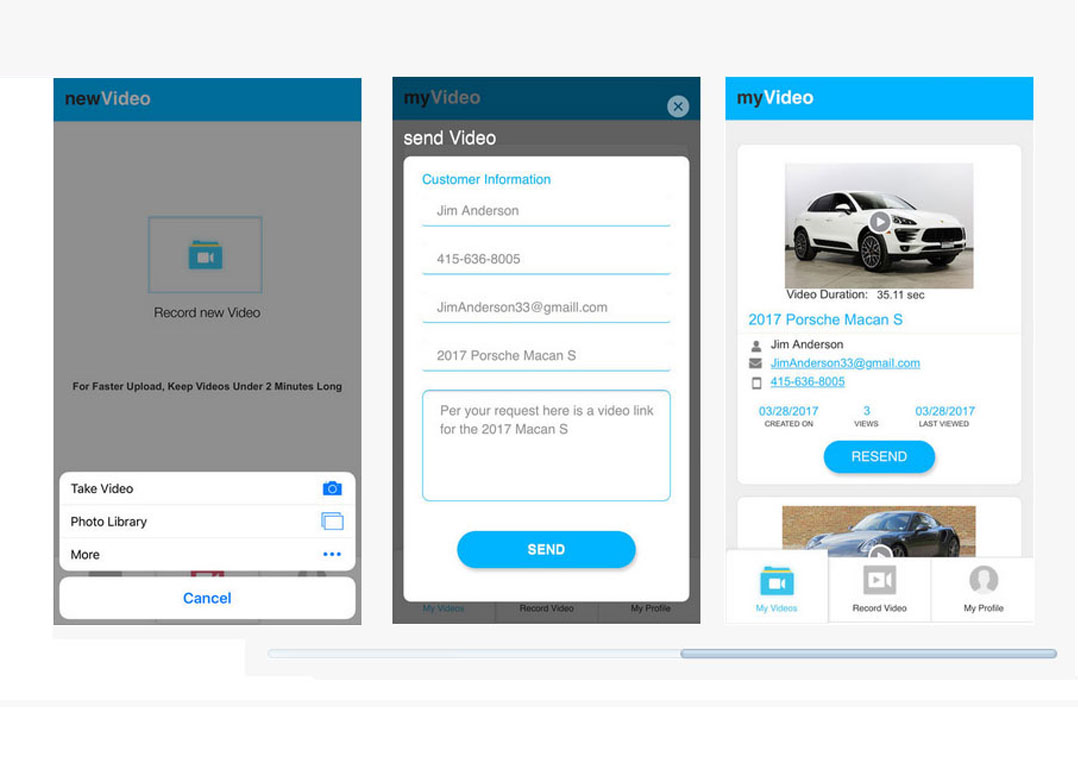 Client wanted us to develop an iOS app by which the automotive sales professionals can record a video, fill out the form and share the same with their potential clients by simply using their email ID/phone number along with the personalized message.