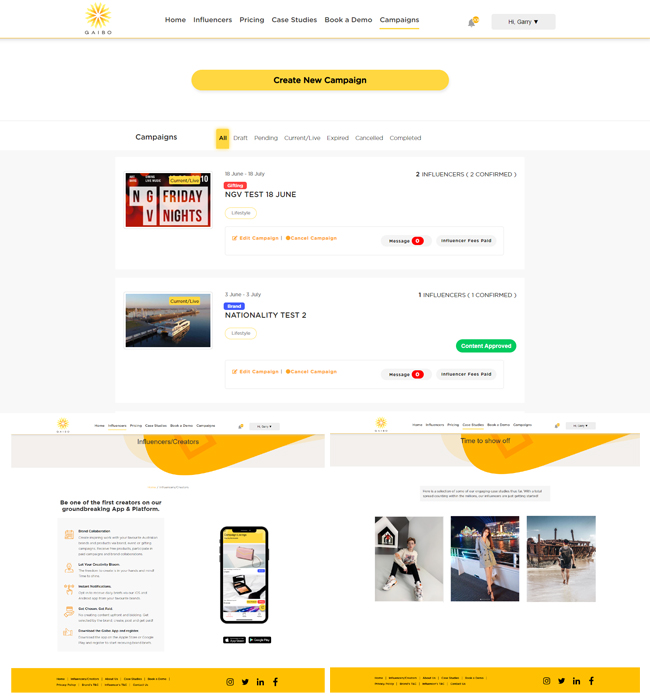 Developing the online marketplace for GAIBO influencers required dedicated and experienced developers, as well as designers, and our development team came as the perfect pick. Our Laravel developers worked as per the specific demand of the client to design and develop a Laravel website from the scratch. We created a login/signup functionality that allows users to access services including creating campaigns, confirming influencers, and creating posts on social media platforms (Weibo, TikTok, YouTube, Douyin, etc.)