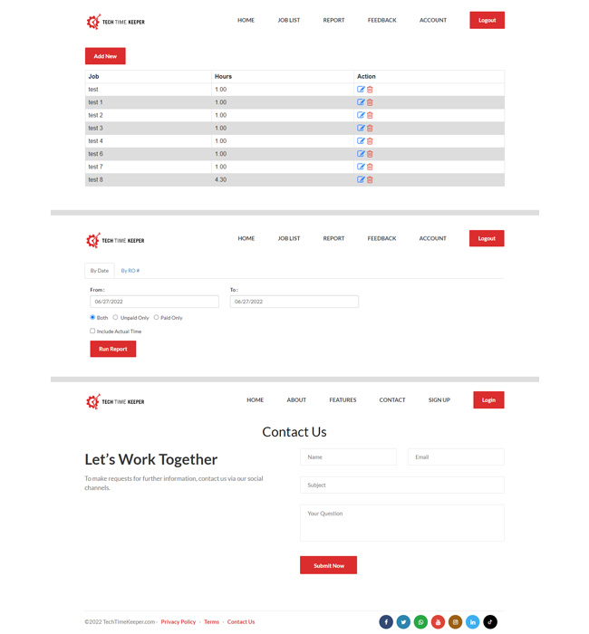 TechTimeKeeper is a software company based in Chicago, United States. The purpose behind forming TechTimeKeeper is to help auto mechanics track time in the automobile sector. It saves technicians time and helps them financially by instantly calculating total hours and gross. By using flat rate hour tracking software, technicians can make sure that they are being paid for their every tenth of hourly worked. The client approached us to design and develop a Laravel website from scratch.