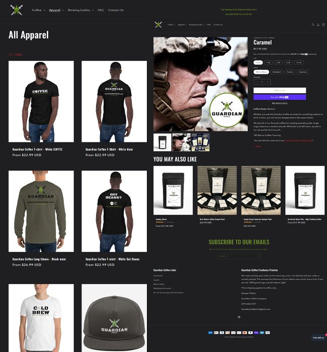 Guardian Coffee is our USA-based client. A top-notch veteran owned and operated coffee company. They strive to be the best veteran-owned coffee company in their freedom-loving niche. So, the client associated with SynapseIndia to get our Shopify development services.