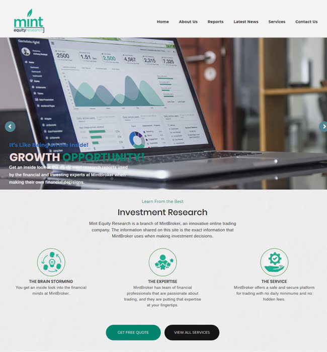 The client, Mint Equity Research is a trading and investment organization based in the USA. The company used to offer the safest and secured way of trading anywhere. The client's requirement was an informative website for trading and investments in the USA.