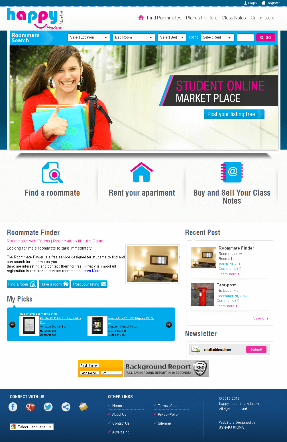 We have designed the home page and an inside page template for the site. The featured products were displayed on home page using a jQuery slider. We have modified the colors/fonts of our design based on client requirements/ feedback/ suggestions. After freezing the designs we have converted them into HTML and have forwarded these to our development team for further development process. We have included in the website home page jQuery slider, logo and “Find a Roommate” section. We have integrated the theme in WordPress.